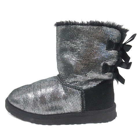 アグ オーストラリア Ugg Australia Bailey Bow Black Metallic Boot ベイリー ボウ ムートン ショート ブーツ シューズ 靴 スエードレザー リボン Fi サイズ23 5cm ブラック シルバー レディース レディース 026 ベクトルパーク